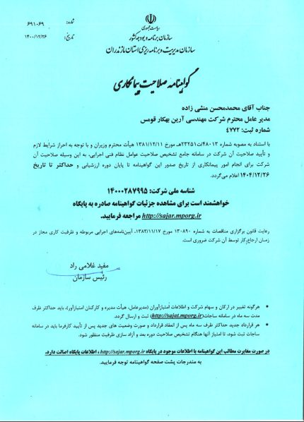 • گواهینامه صلاحیت پیمانکاری